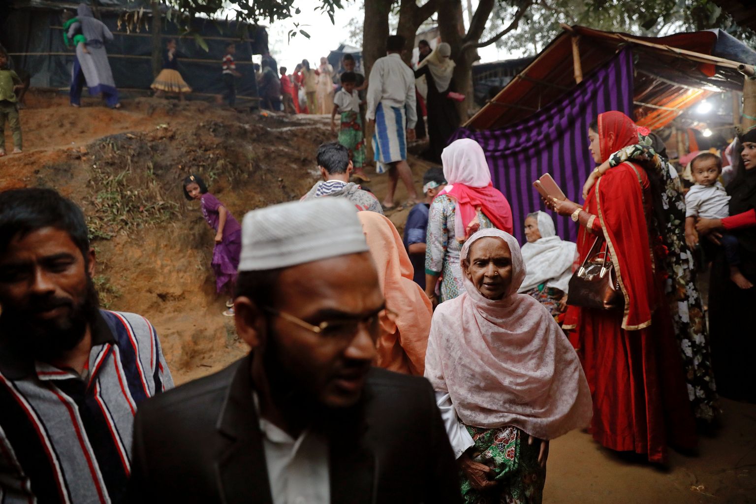 People attending a wedding party for Rohingya refugees Saddam Hussein, 23, and Shofika Begum, 18, at the Kutupalong camp near Cox's Bazar, Bangladesh, on Dec 11.