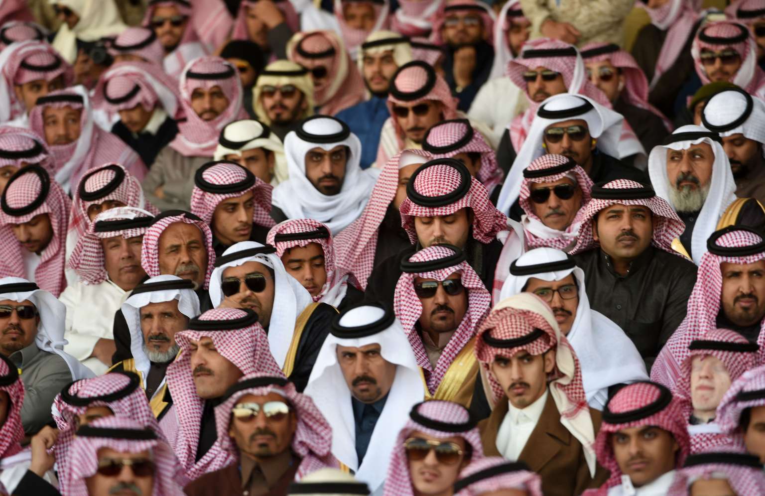 Saudis attend a ceremony marking the 50th anniversary of the creation of the King Faisal Air Academy at the King Salman airbase in Riyadh.