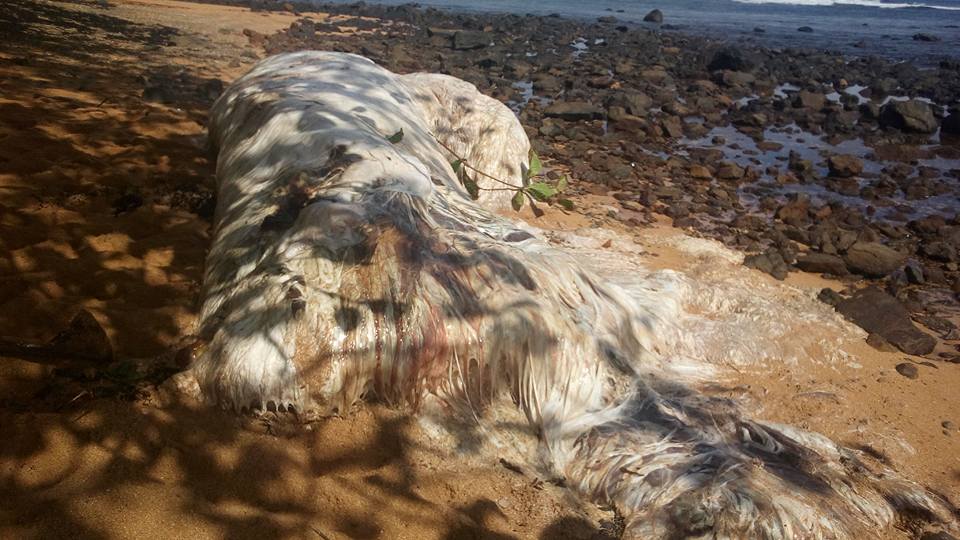 Facebook user Scott Blandzinski said: "It's a decomposing whale that died about a fortnight ago. All that white fluff is a result of it being in an advanced stage of decomposition, with the apparent hair actually being exposed, rotting muscle fibers."