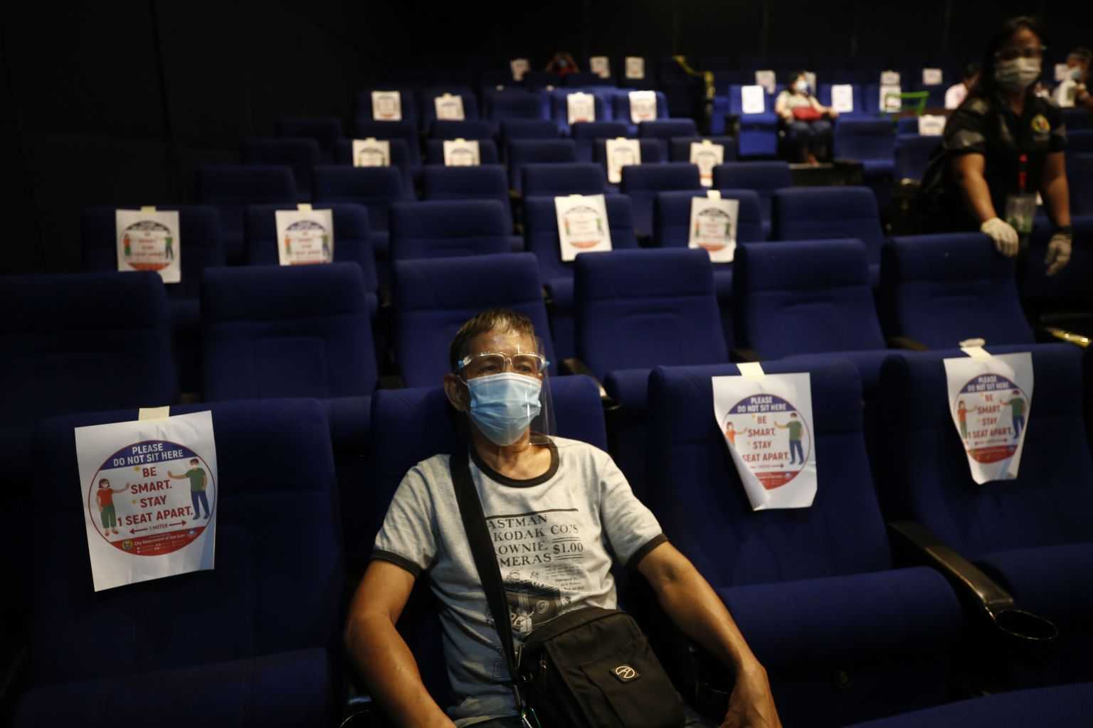 A man rests inside a cinema complex after being inoculated with the Sinovac Covid-19 vaccine in San Juan City, on June 1, 2021.