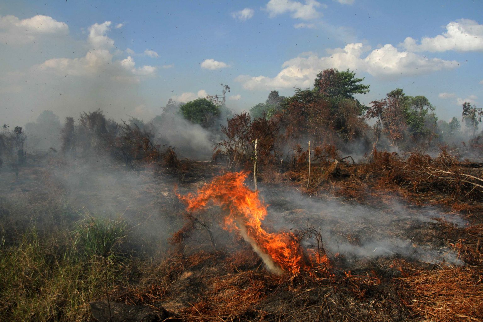Fires burn peatland area in Kampar, Riau province, Indonesia, on July 24, 2017.