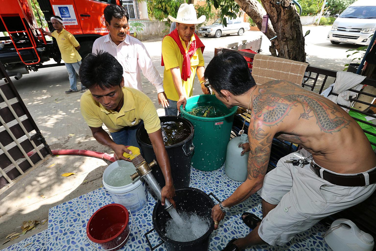 Thai authorities giving free water to local villagers in Pathum Thani province, on the outskirts of Bangkok, Thailand, on July 13, 2015.