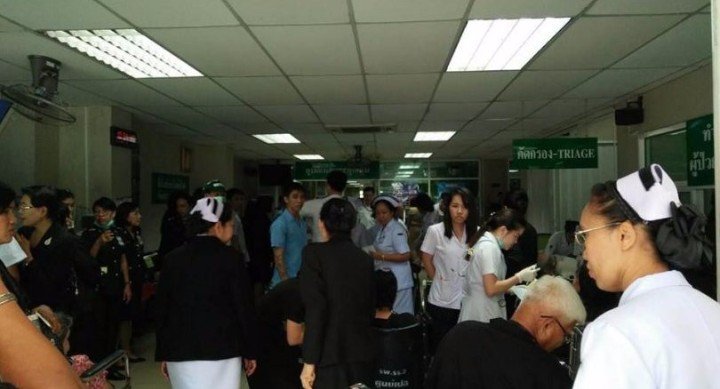 The explosion took place in a waiting room for retired officers at the Phramongkutklao Hospital, a military hospital in the heart of the capital.