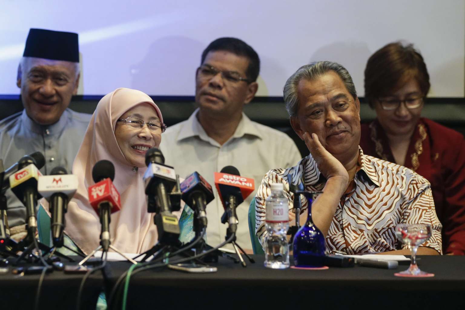 Malaysian Opposition Leader Wan Azizah Wan Ismail (left) and Former Malaysian Deputy Prime Minister Muhyiddin Yassin (right) during a press conference on July 30, 2016.