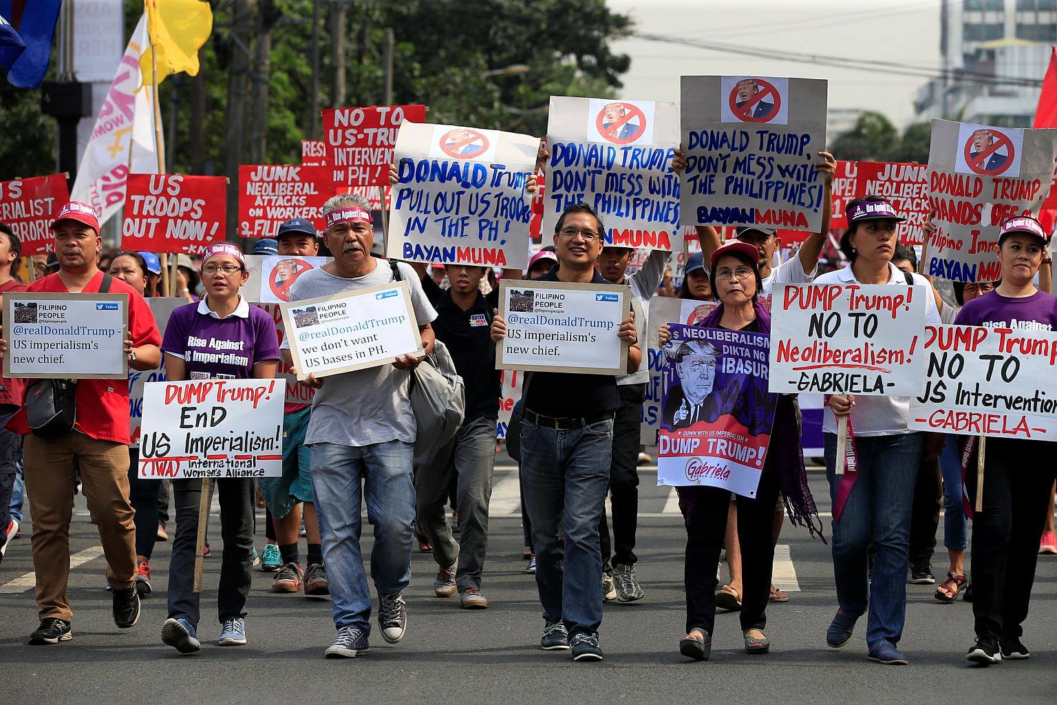 Chanting "Dump Trump", the protesters from leftist groups also expressed concerns that Mr Trump was a threat to the millions of Filipino immigrants living in the United States.