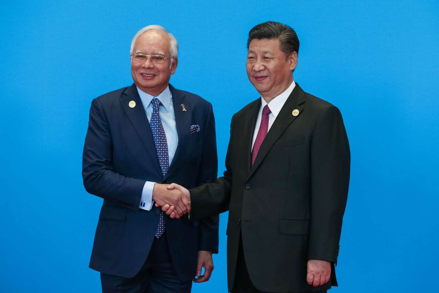 Malaysia's Prime Minister Najib Razak shakes hands with China's President Xi Jinping during the welcome ceremony for the Belt and Road Forum, at the International Conference Center in Yanqi Lake, north of Beijing, on May 15, 2017.