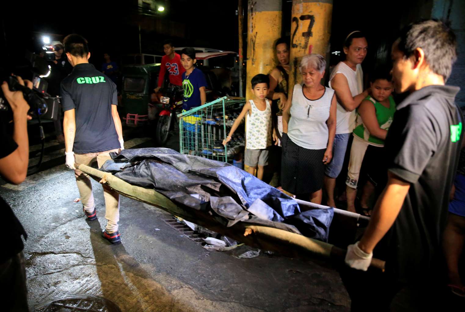 Funeral workers carry the body of a man who died after a gunfight with local police inside his house during a drug bust in metro Manila on Oct 19, 2016.