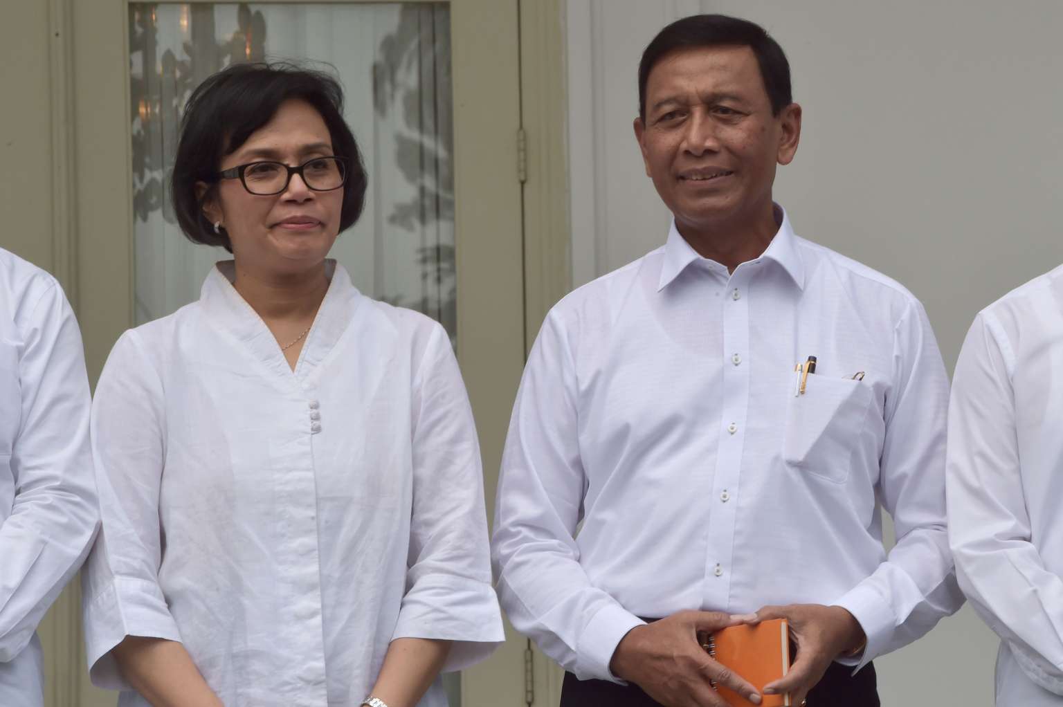 Security Minister Wiranto (right) with Finance Minister Sri Mulyani at the press conference announcing Indonesia's new Cabinet ministers, at the presidential palace in Jakarta on July 27, 2016.