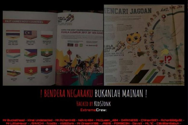 PETALING JAYA (THE STAR/ASIA NEWS NETWORK) - Indonesian hacker group ExtremeCrew has defaced 27 Malaysian websites in response to an oversight in the official souvenir booklet of the Kuala Lumpur SEA Games 2017, which carried the Indonesian flag upside down.