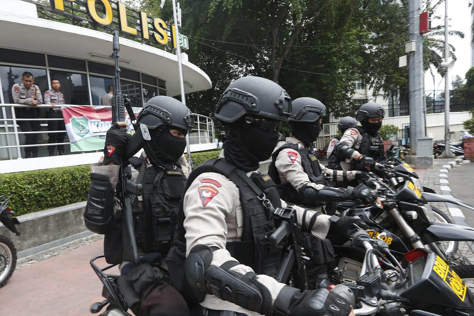 Indonesian anti-terror police squad members patrol the streets in Jakarta, Indonesia on Dec 25, 2016.