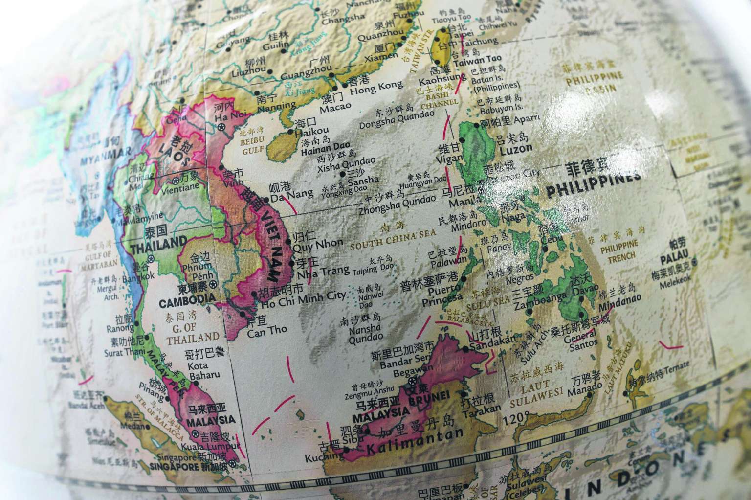 The South China Sea is seen on a globe for sale at a bookstore in Beijing, on June 15, 2016.