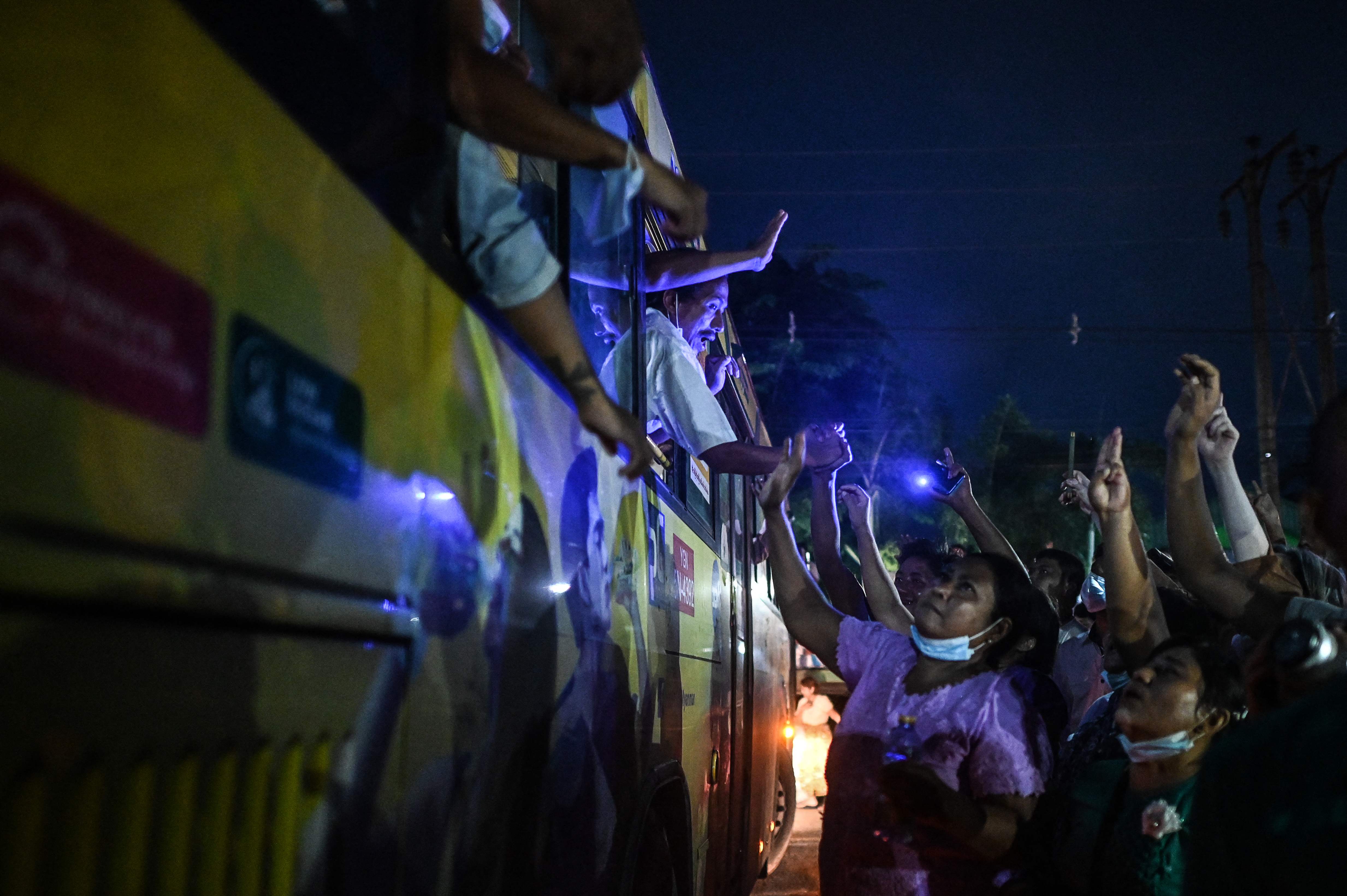 Videos posted on social media showed a stream of mostly young detainees pouring off buses from Yangon's colonial-era Insein prison, smiling, waving and embracing family members who wept as they arrived.