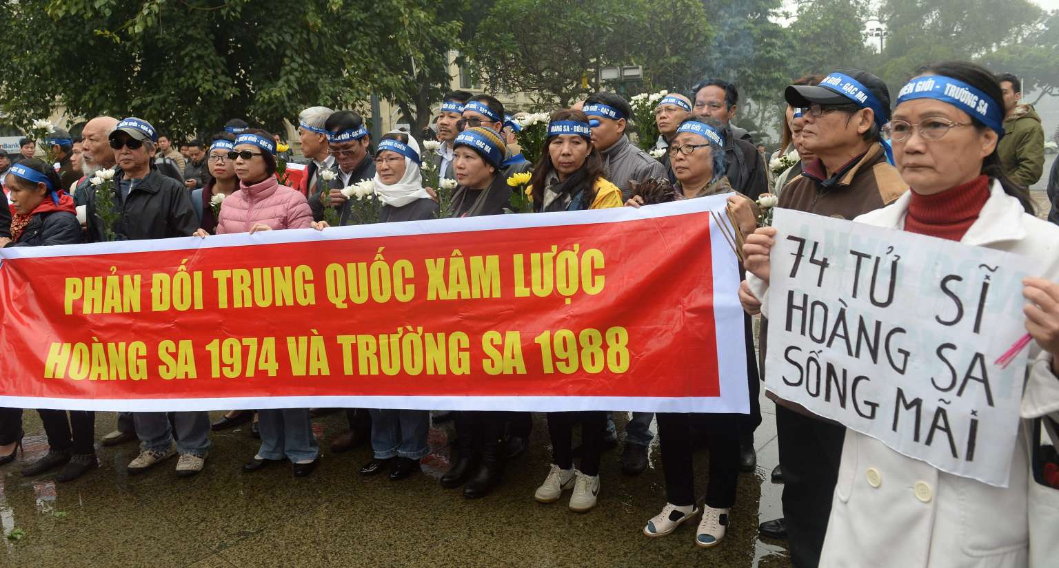 Activists at a rally marking the 42nd anniversary of the naval battle between China and then-South Vietnamese troops over the Paracel Islands in the South China Sea.