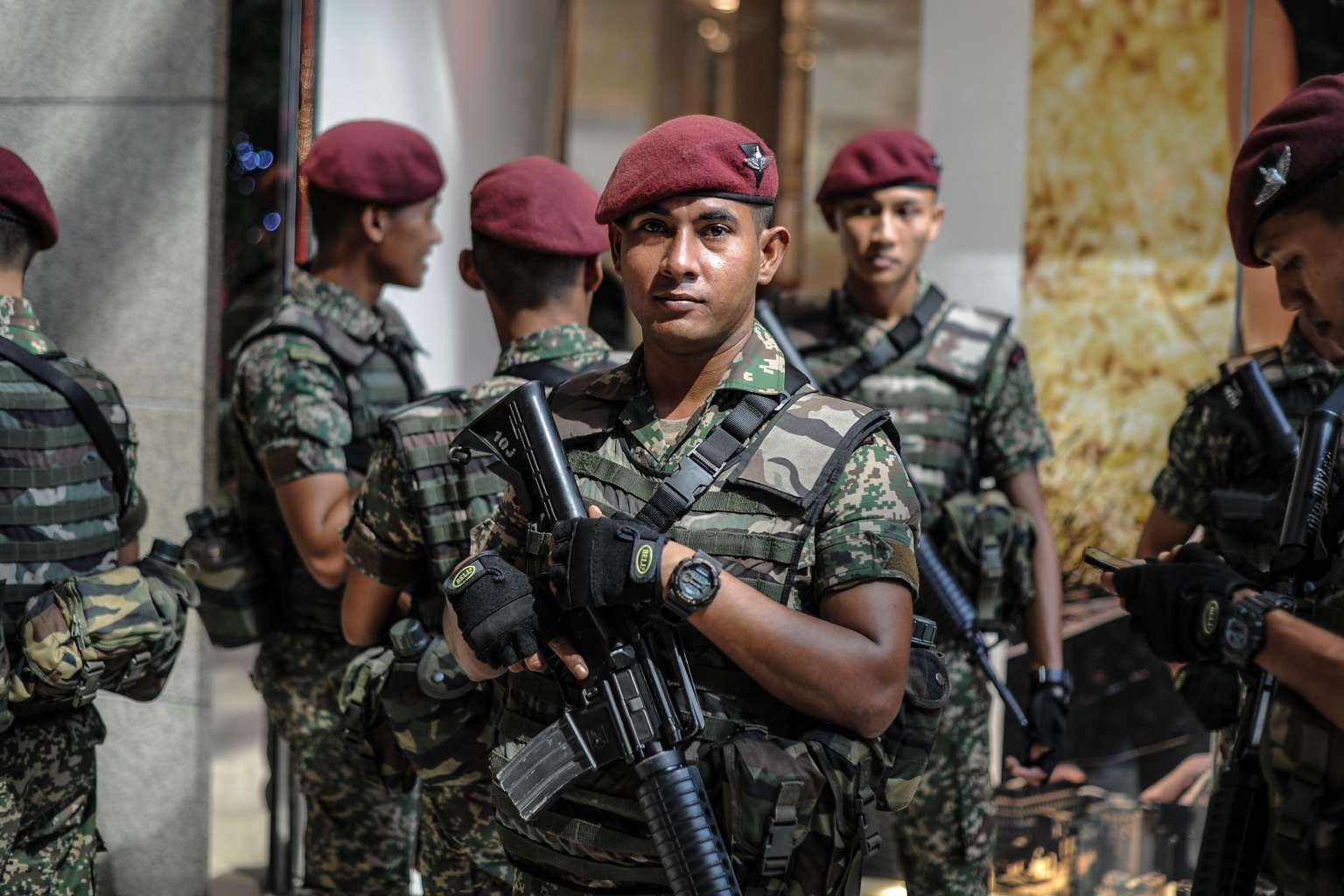 A Malaysian soldier at a joint police-army exercise at a shopping mall in Kuala Lumpur on Feb 22, 2016.