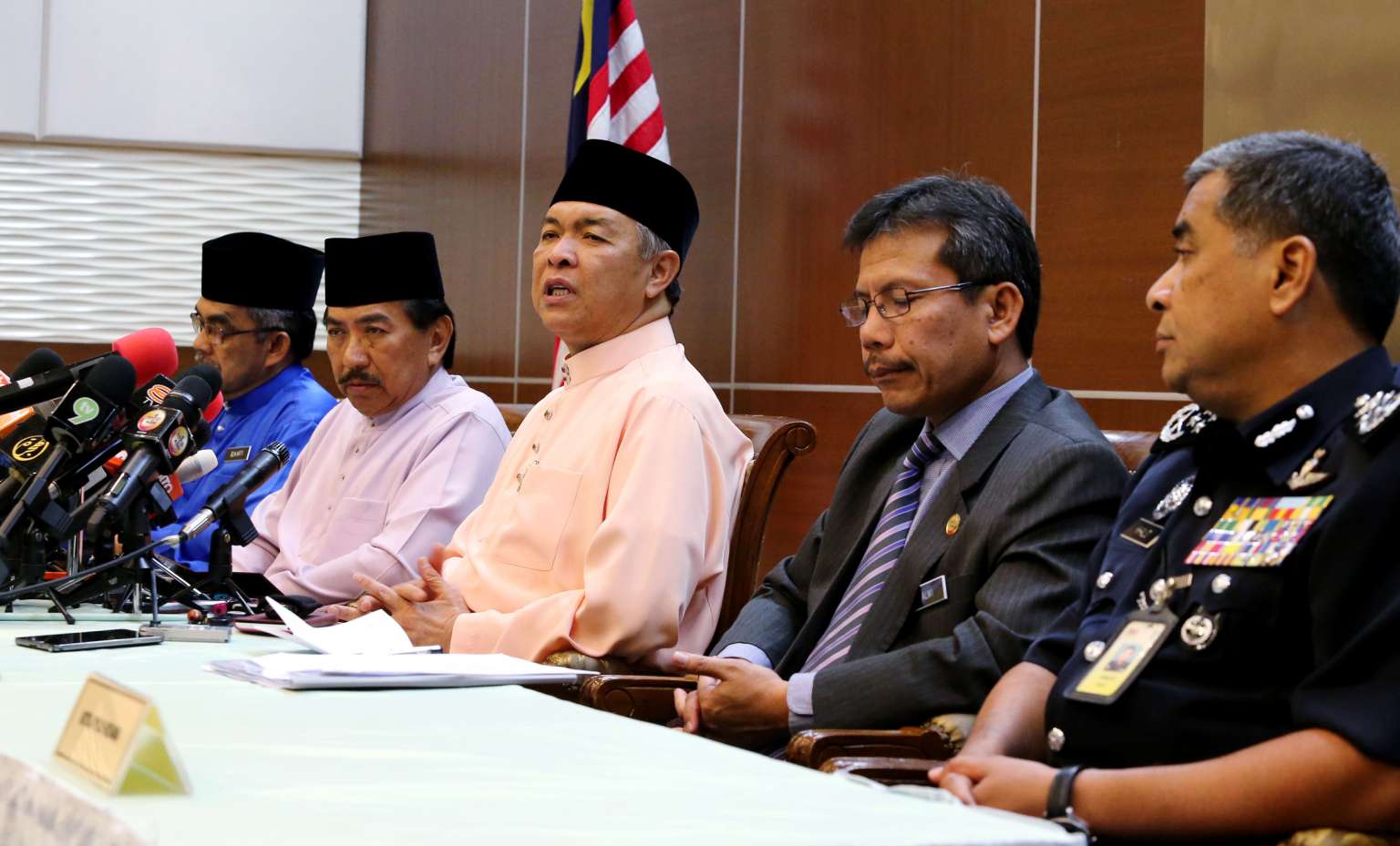 Datuk Seri Ahmad Zahid Hamidi (third from left) at his first press conference as Deputy Prime Minister on Jul 31, 2015.