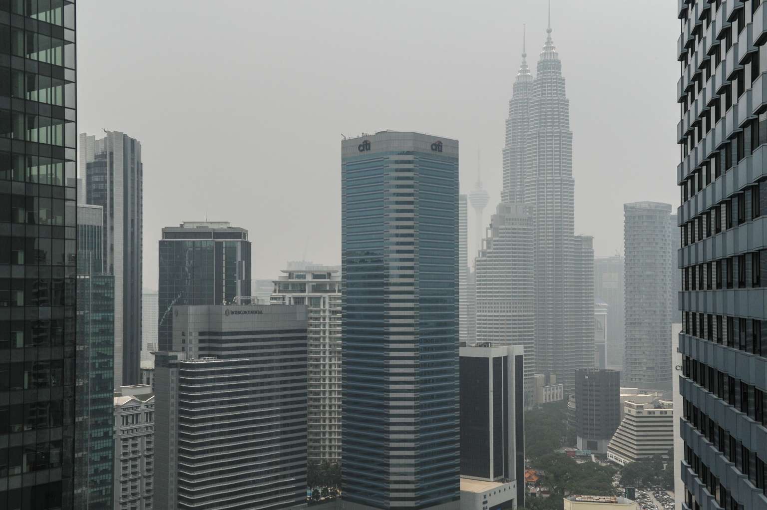 Malaysia's Petronas Twin Towers (centre right) are seen shrouded in haze in Kuala Lumpur on Sept 29, 2015.