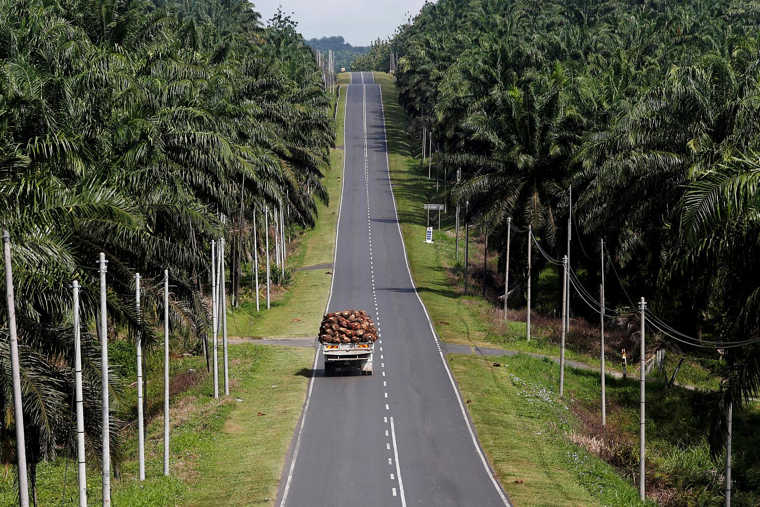 A truck carrying oil palm fruits passes through Felda Sahabat plantation in Sabah.
