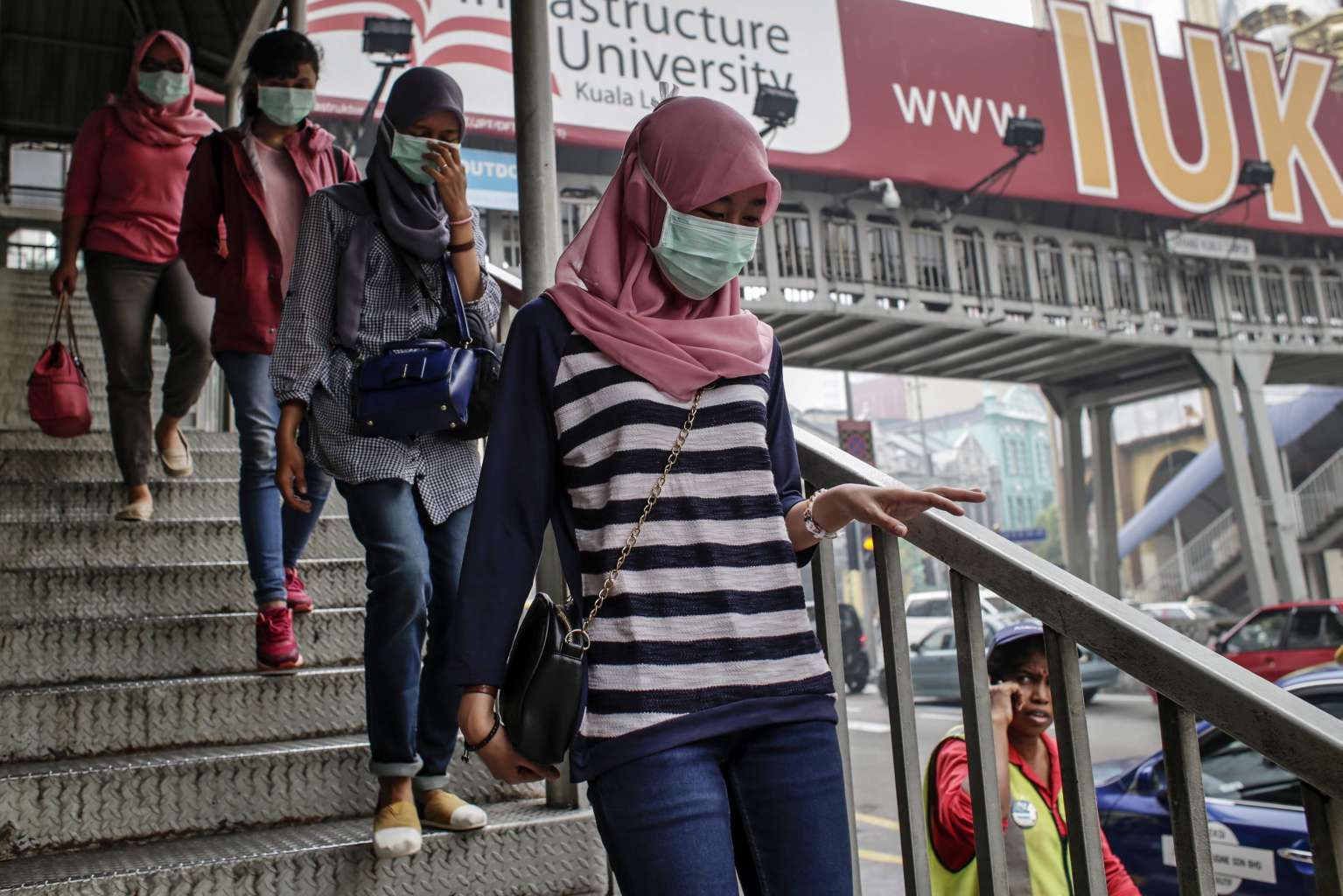 Malaysians wear face masks as a thick haze hovers over Kuala Lumpur, Malaysia, on Sept 26, 2015.