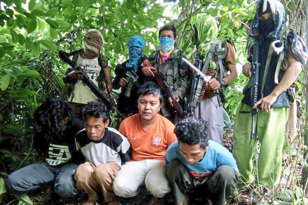 Abu Sayyaf gunmen holding hostages including Mohd Ridzuan (second from right).