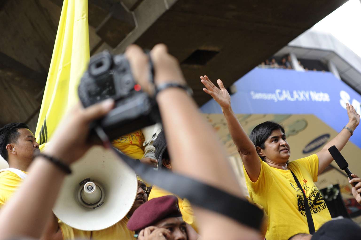 Datuk Ambiga Sreenevasan rousing the crowd at at the Bersih 3.0 rally on April 28, 2012.