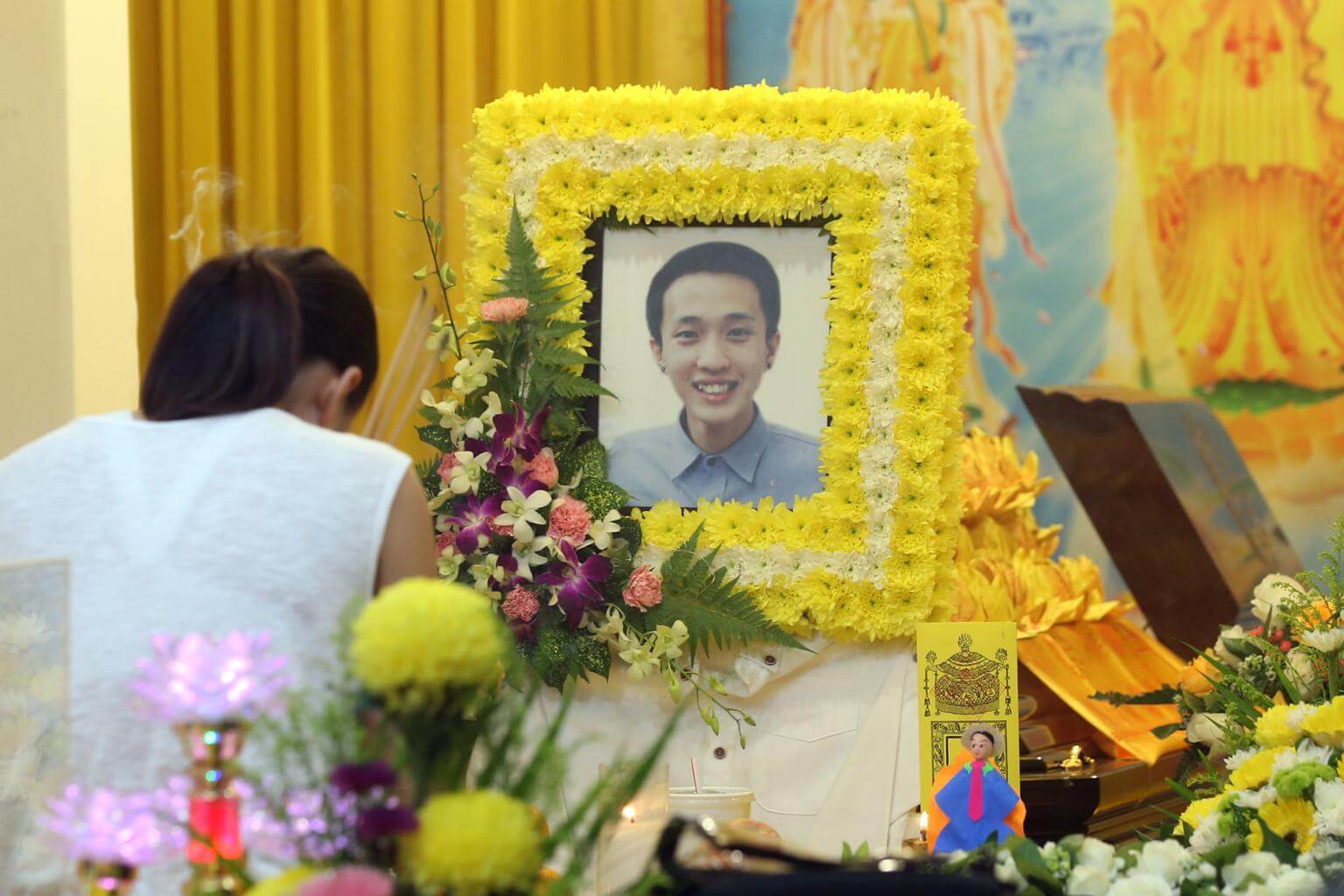 Family and friends pay their respect at the wake of Mr Justinian Tan, a 25-year-old student at Kaplan Singapore, who died from his injuries on Aug 30 at Singapore General Hospital after he was hit by a car in Johor Baru on 25 Aug.