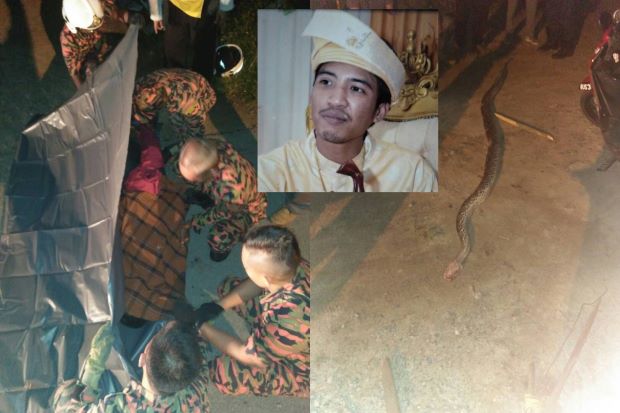 Supt Azizan said initial investigations found that the victim fell from his motorcycle on the side of a road in the village after the reptile began constricting him.