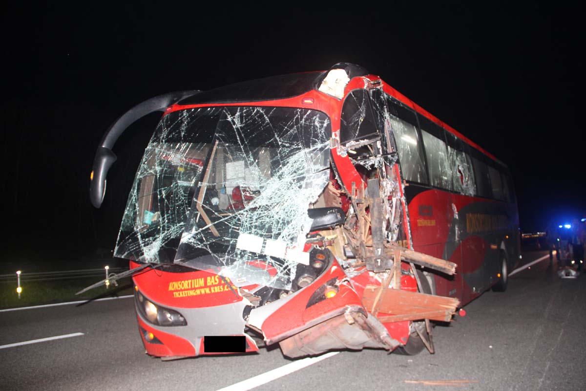 Muar traffic police detained both the bus and trailer drivers for investigations.