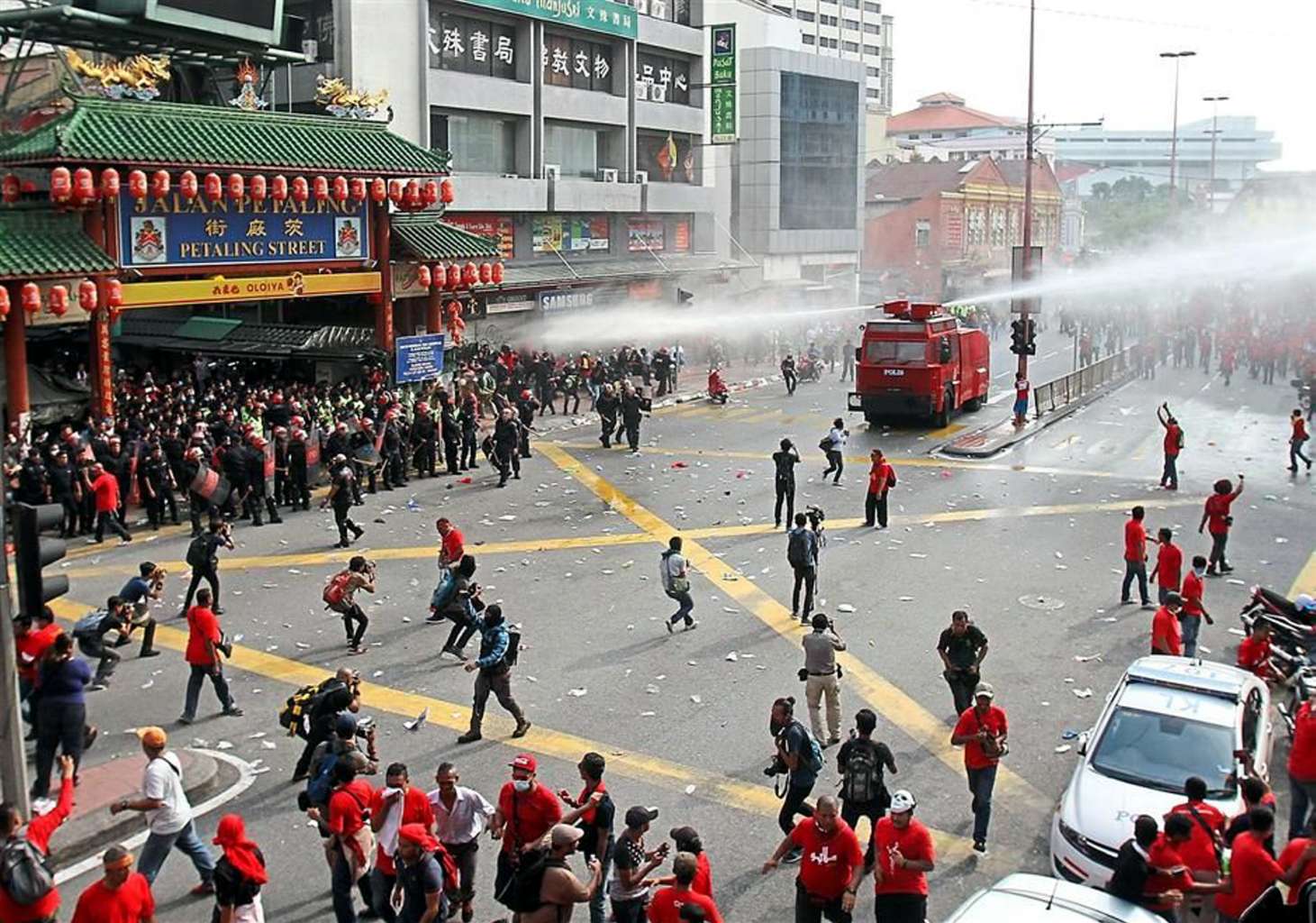 The rally was largely peaceful, although police were forced to disperse an unruly crowd in Petaling Street with water cannon.