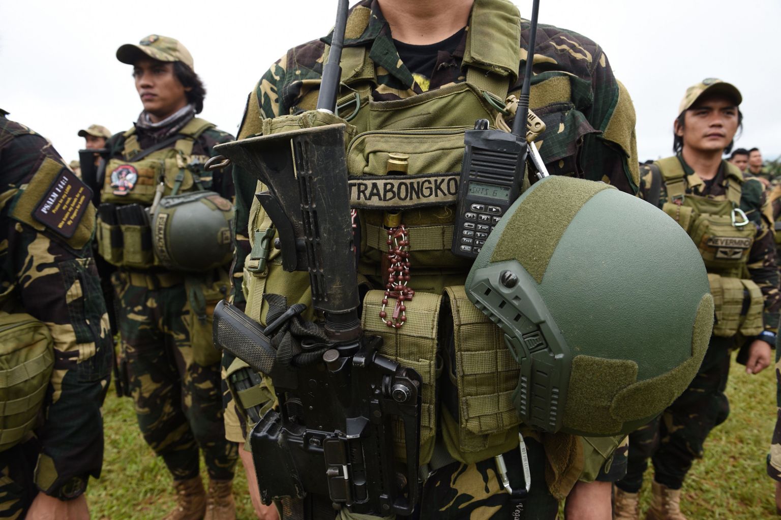 Philippine troops who fought against Isis-inspired Muslim militants stand in formation during their send-off ceremony inside a military camp in Marawi on the southern island of Mindanao on Oct 25, 2017.