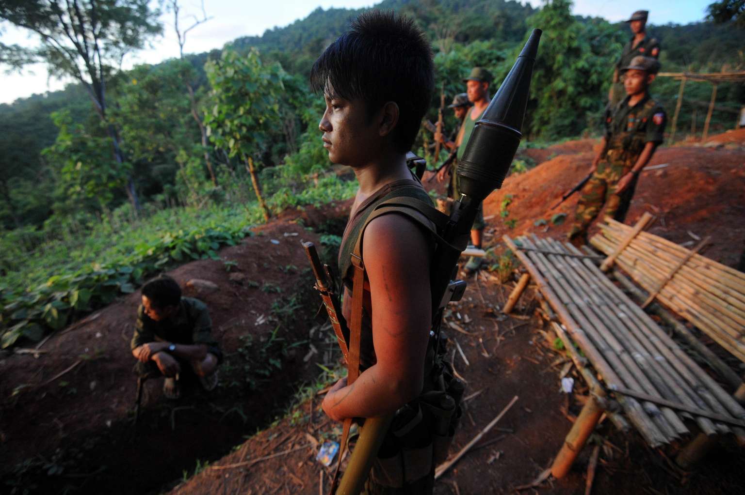 This file picture shows soldiers from the All Burma Students Democratic Front at an outpost on the Laja Yang frontline. The armed group is among eight which signed a ceasefire accord with the Myanmar government on Oct 15, 2015.