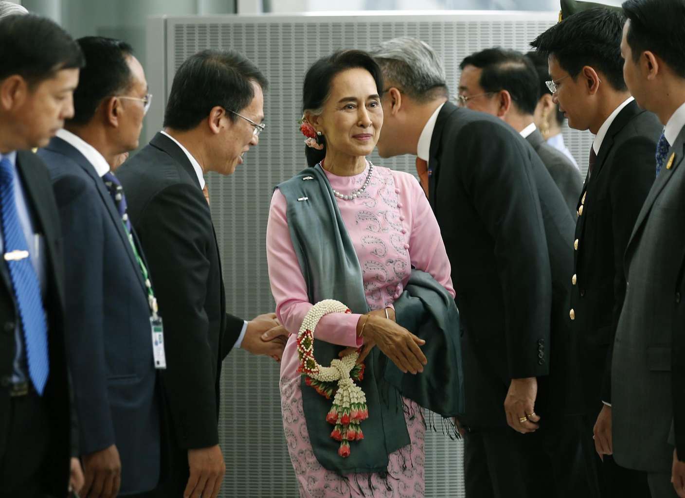 Myanmar's Aung San Suu Kyi arrives in Thailand to visit troubled diaspora