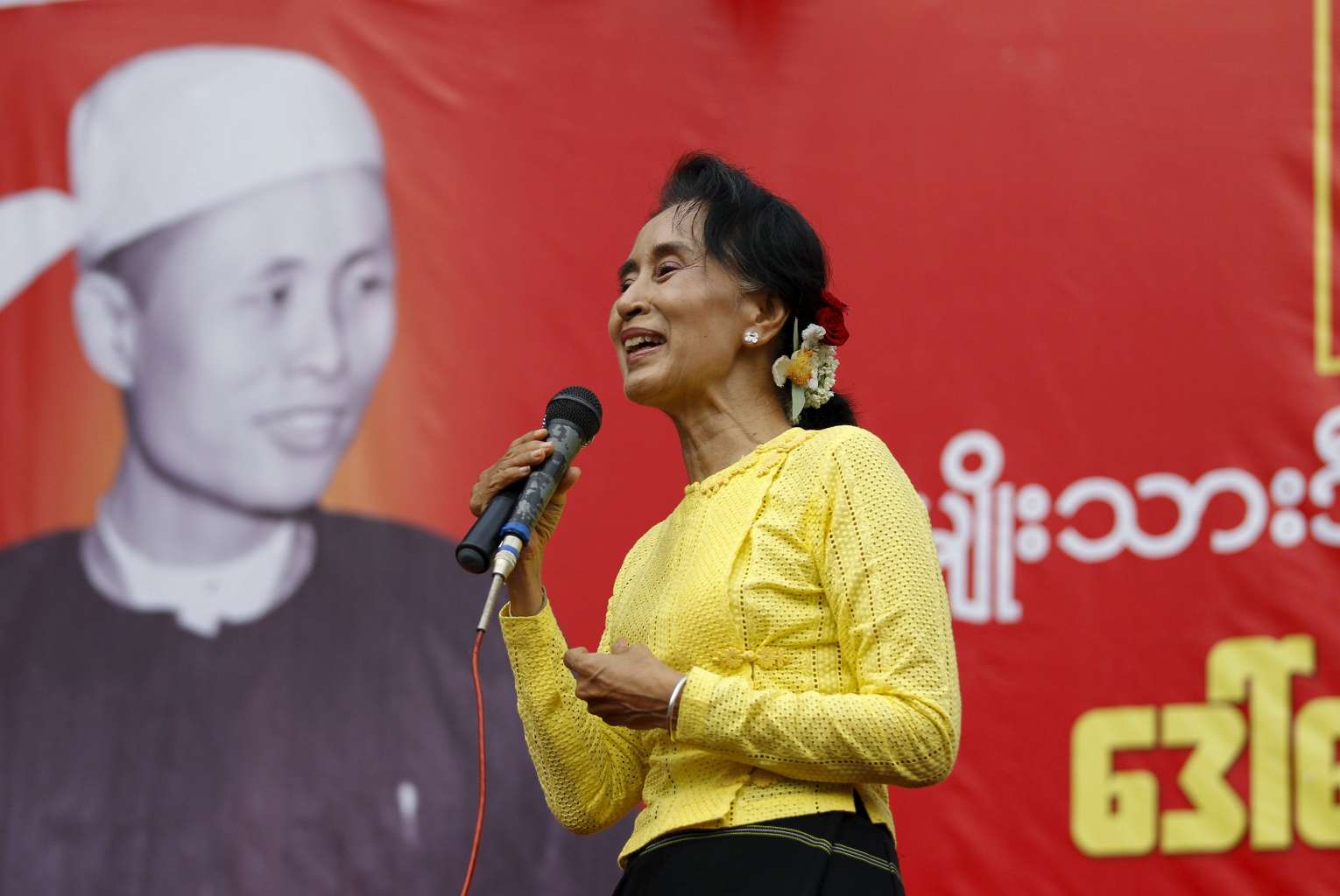 Myanmar pro-democracy leader Aung San Suu Kyi speaking at a rally in her constituency, Kawhmu township, on Oct 24, 2015.