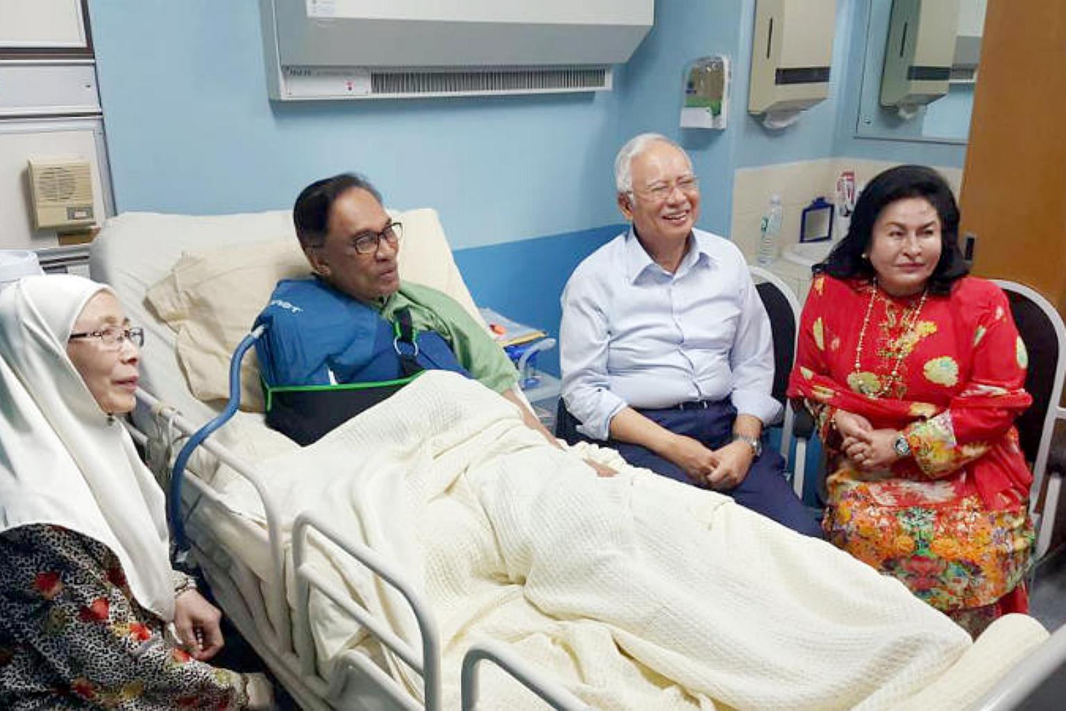 "I went to visit Datuk Seri Anwar Ibrahim today... I hope he recovers quickly," tweeted Datuk Seri Najib, posting a photo of his visit. The PM was accompanied by his wife Rosmah Mansor while Anwar's wife Wan Azizah Wan Ismail was also present.