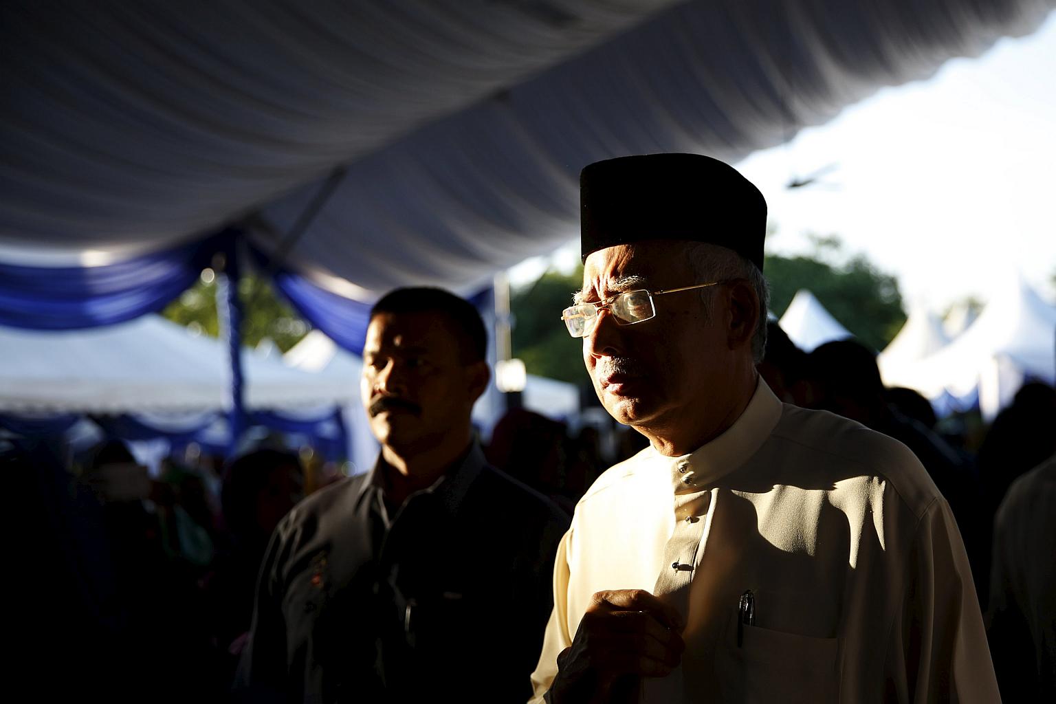 Malaysian PM Najib Razak arriving for a news conference at a mosque outside Kuala Lumpur.