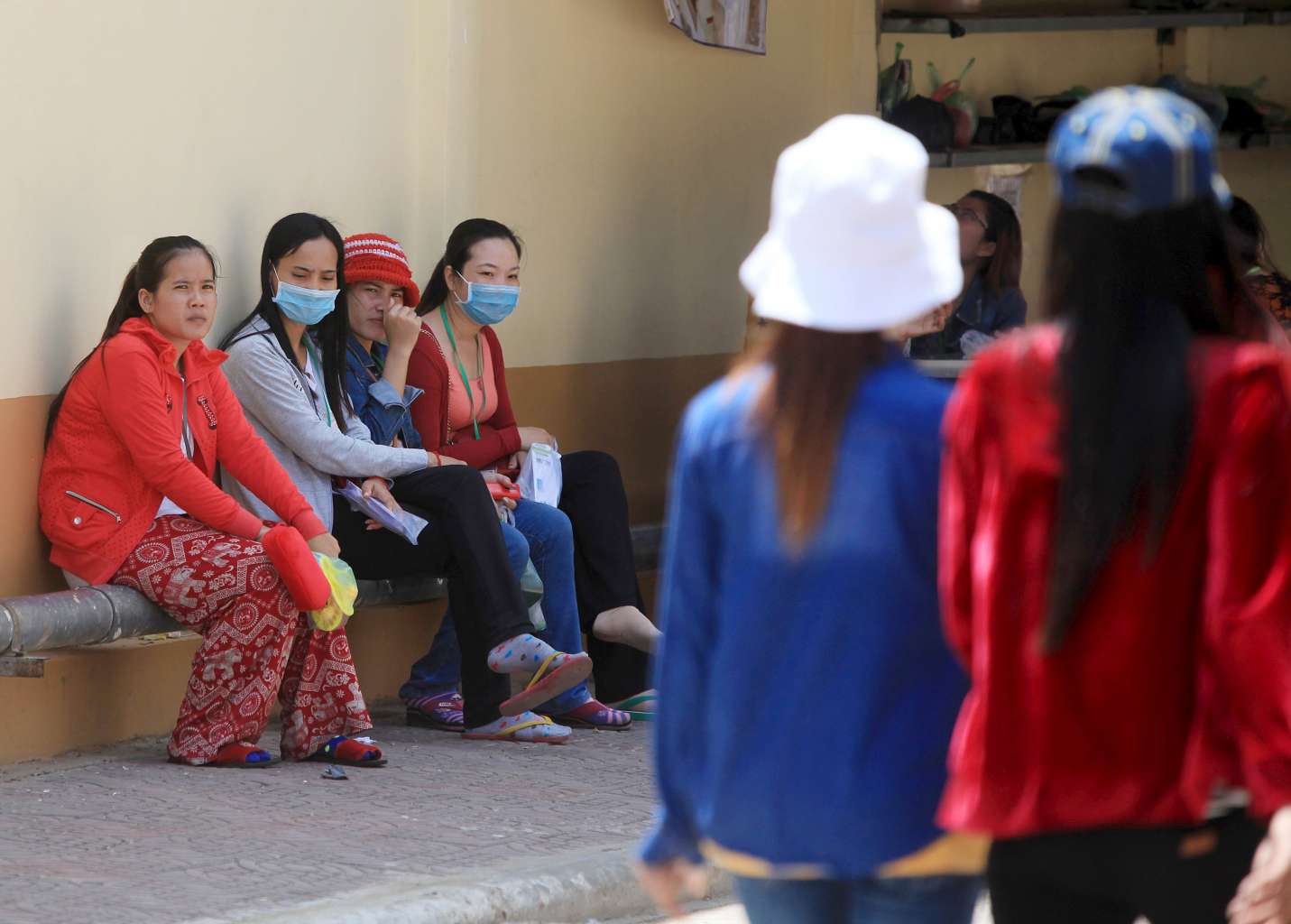 Garment workers rest after lunch at a factory in Phnom Penh on Oct 8, 2015.