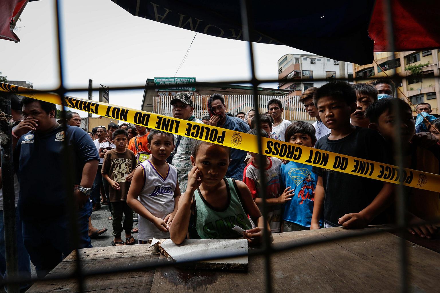 Filipinos looking outside a cordoned area following a police operation against illegal drugs in Manila, Philippines on Aug 28, 2016.