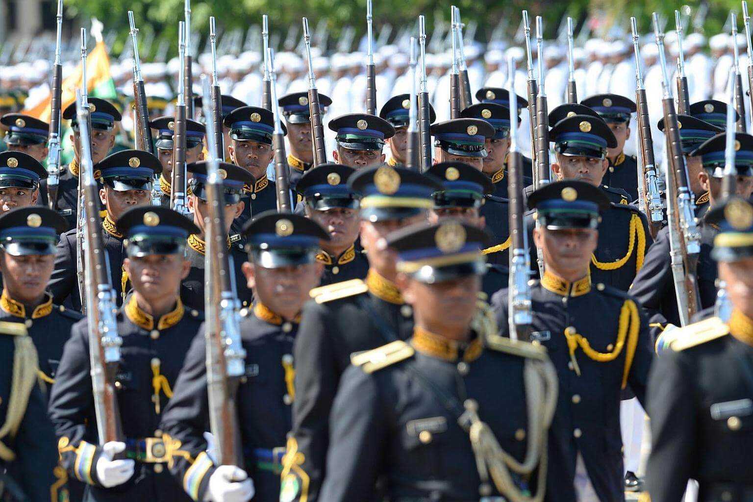 Philippine military personnel marching during a parade in honour of President Rodrigo Duterte at the military headquarters in Manila on July 1, 2016.