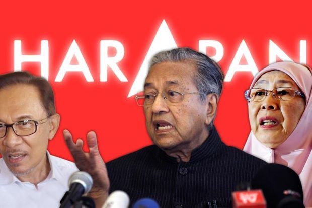 (From left) Datuk Seri Anwar Ibrahim, Tun Dr Mahathir Mohamad and Datuk Seri Dr Wan Azizah Wan Ismail.