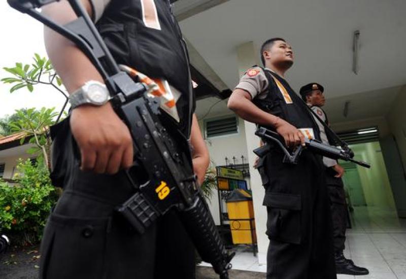 A file photo of Indonesian police personnel standing guard.