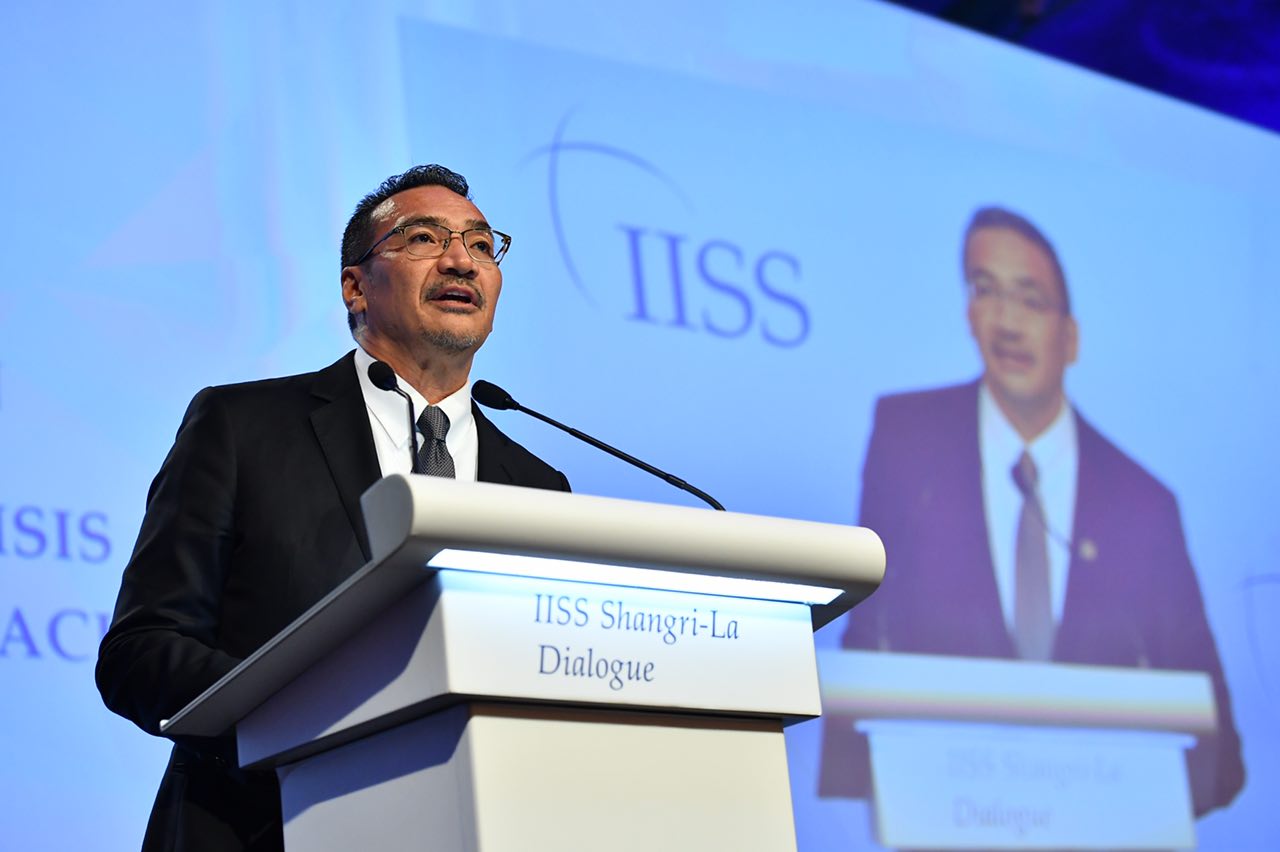 Malaysian Defence Minister Hishammuddin Hussein speaking at a discussion on challenges facing the Asia-Pacific at the annual Shangri-La Dialogue on Saturday (June 3).