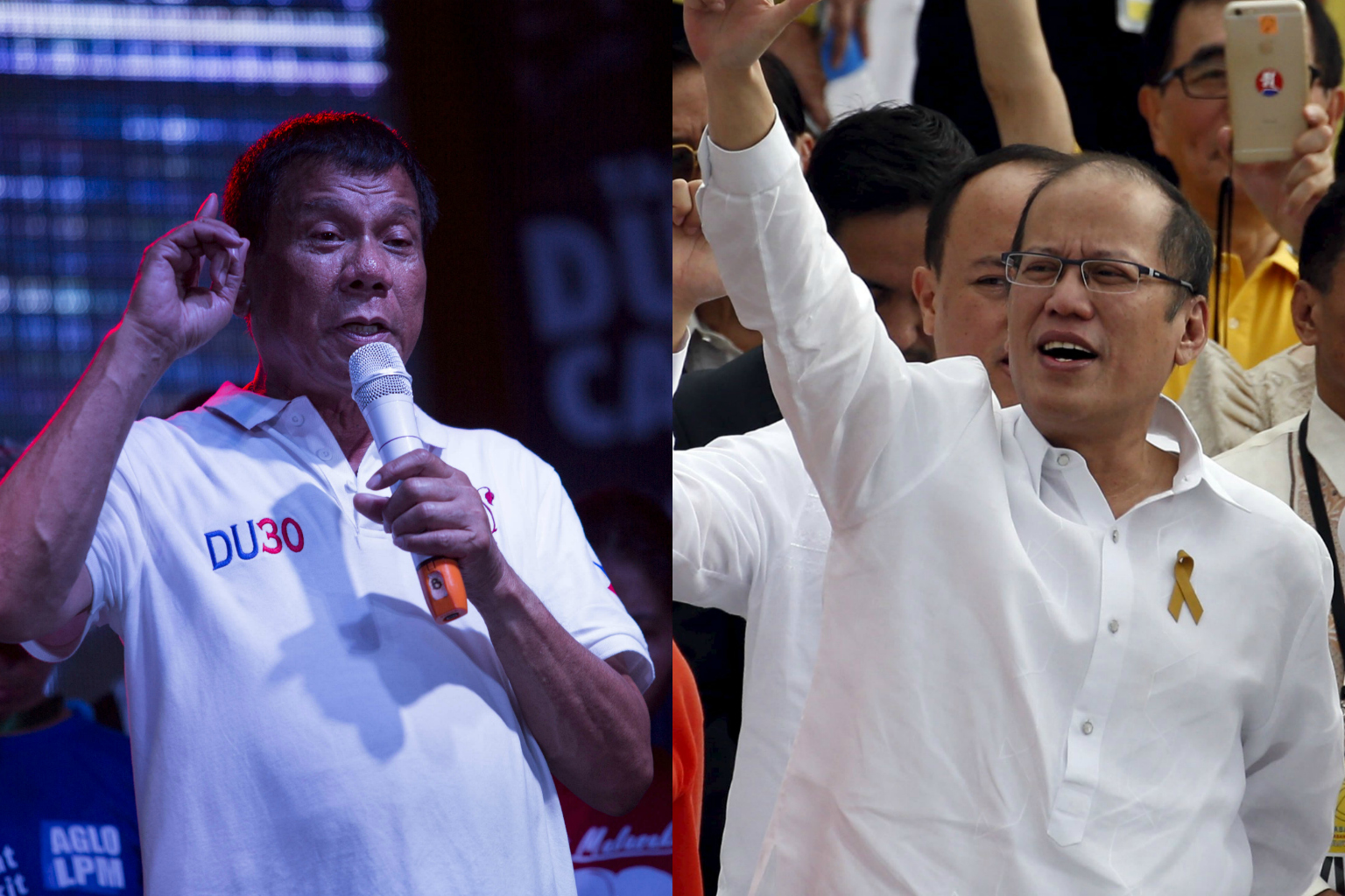 Philippine presidential candidate Rodrigo Duterte (left) and Philippine President Benigno Aquino.