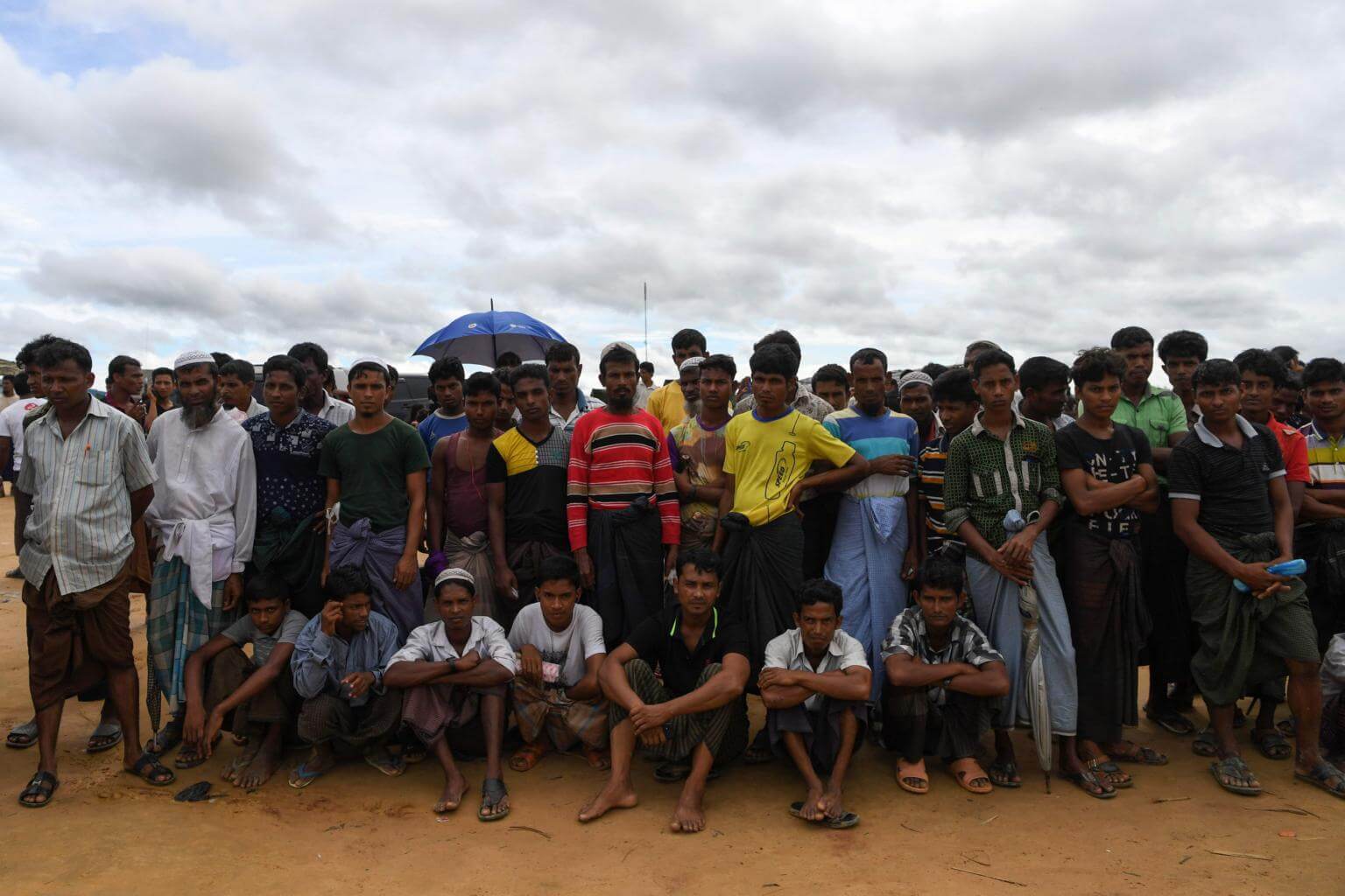 Rohingya refugees look on at a food distribution centre at the Kutupalong refugee camp in Bangladesh's Ukhia district on Oct 7, 2017.