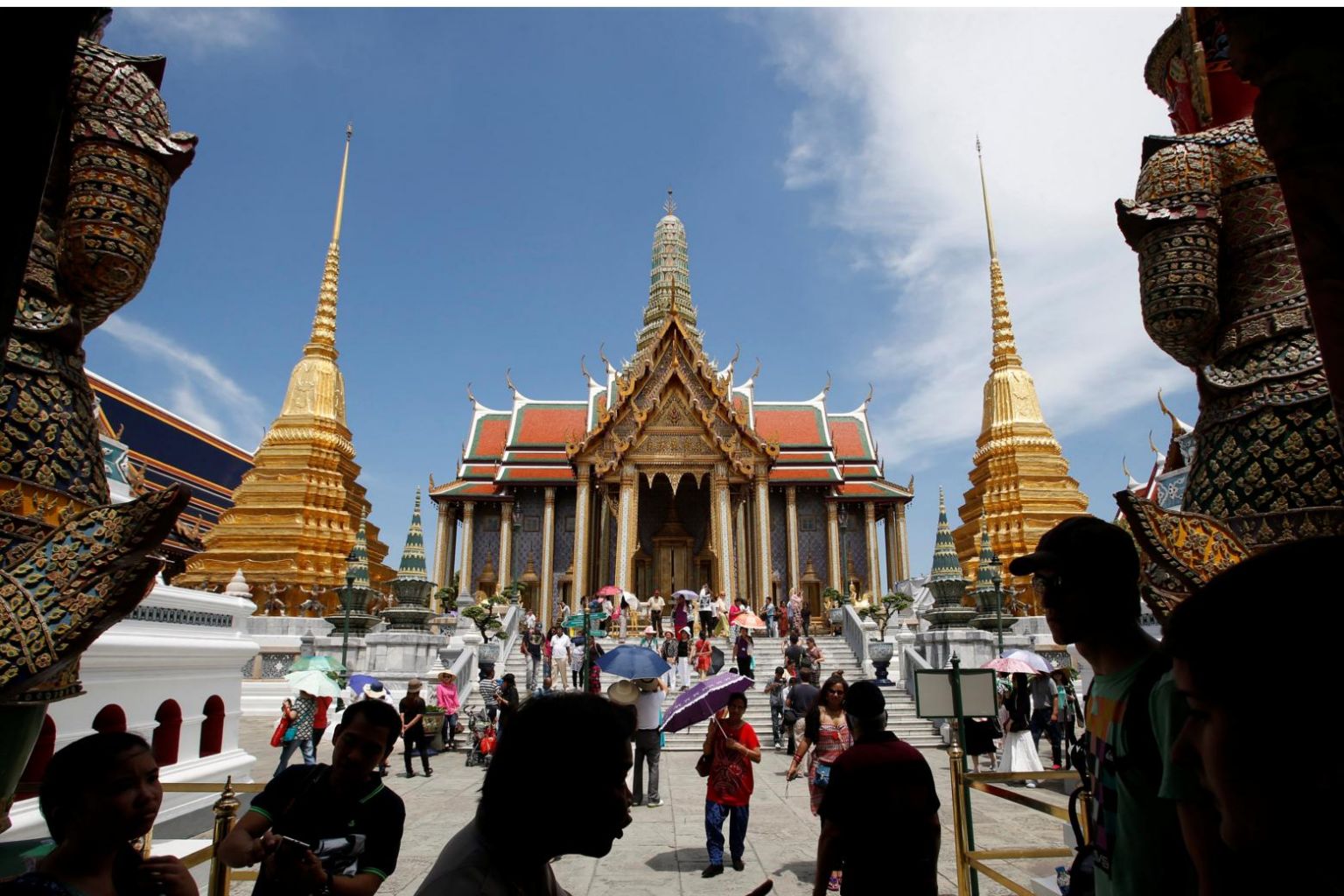 Tourists visit the Grand Palace in Bangkok, Thailand.