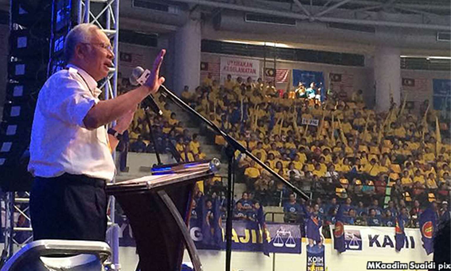Malaysia's Prime Minister Najib Razak at a closed door meeting with Barian Nasional leaders on Aug 14, 2015.