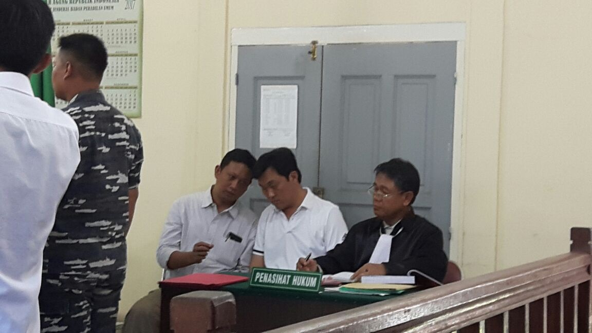 Ricky Tan Poh Hui (second from right) has been charged with trespassing in Indonesian waters in a Tanjung Pinang District Court on March 15, 2017.