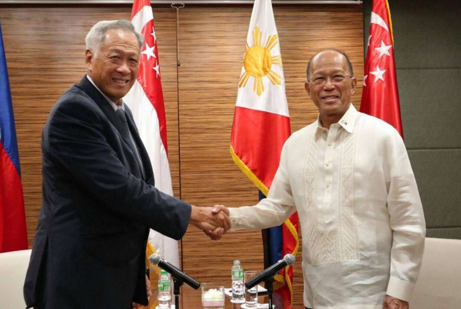 Defence Minister Ng Eng Hen shakes hands with Philippine Secretary of National Defense Delfin Lorenzana at a meeting in Manila.