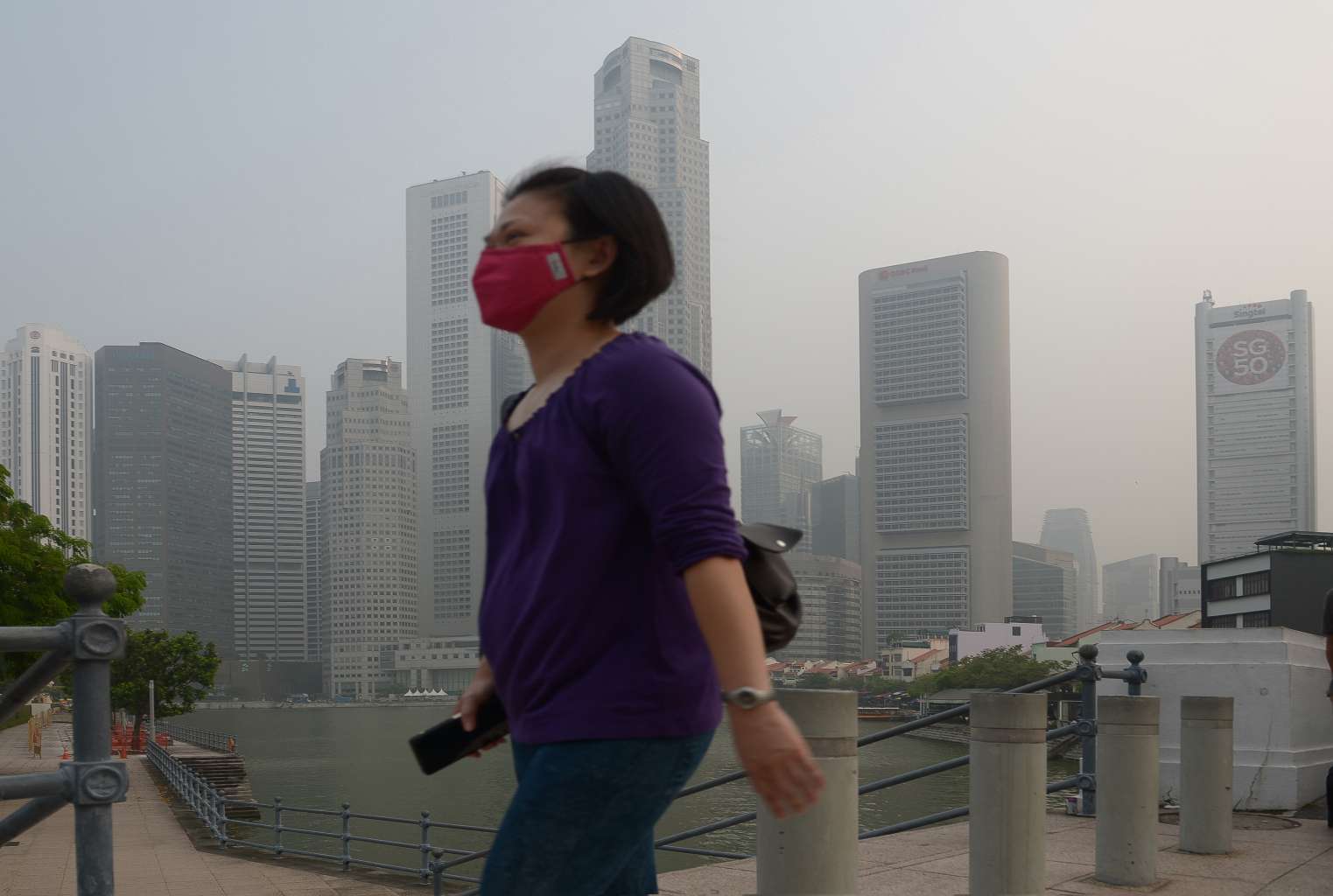 Haze shrouds buildings in Singapore's Central Business District on Oct 26, 2015.