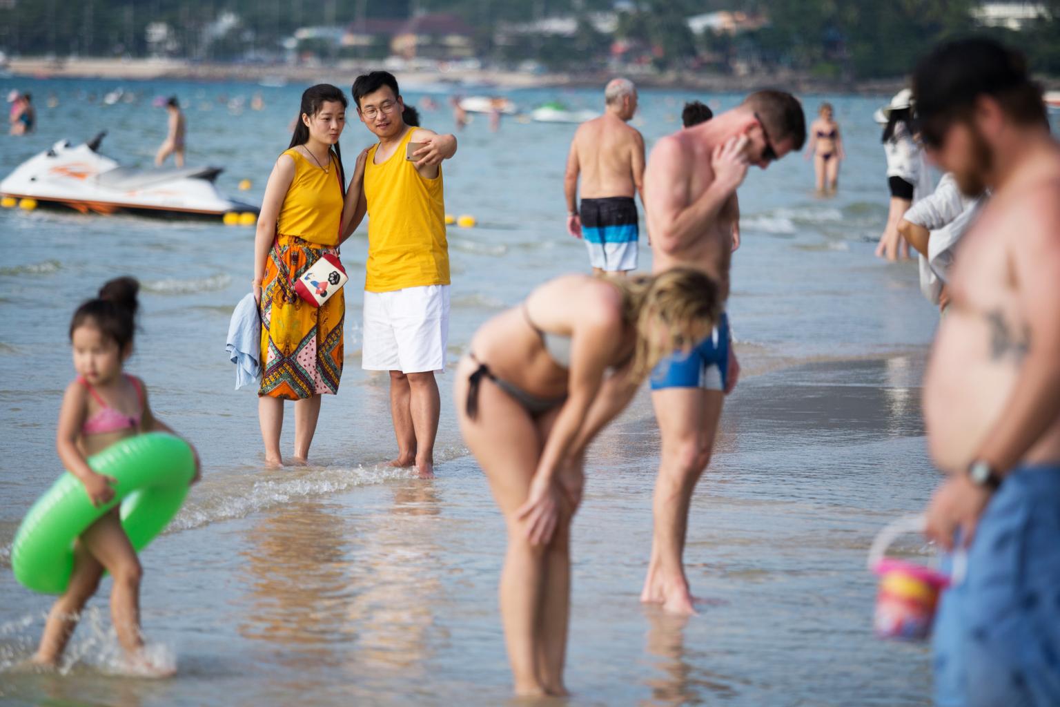 Tourists at Patong Beach in Phuket, Thailand on Jan 16, 2018.