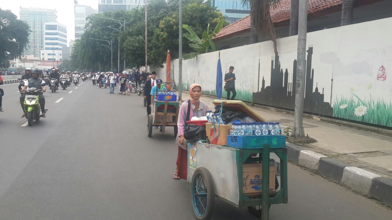 The crowd was later pacified, reportedly by opposition Members of Parliament, who assured them that Parliament gate would be opened and they would be allowed in to air their grievances, leading to another mass movement of people through the heart of the capital. The bulk of the protesters were taking the Thamrin-Sudirman main road en route to Parliament.