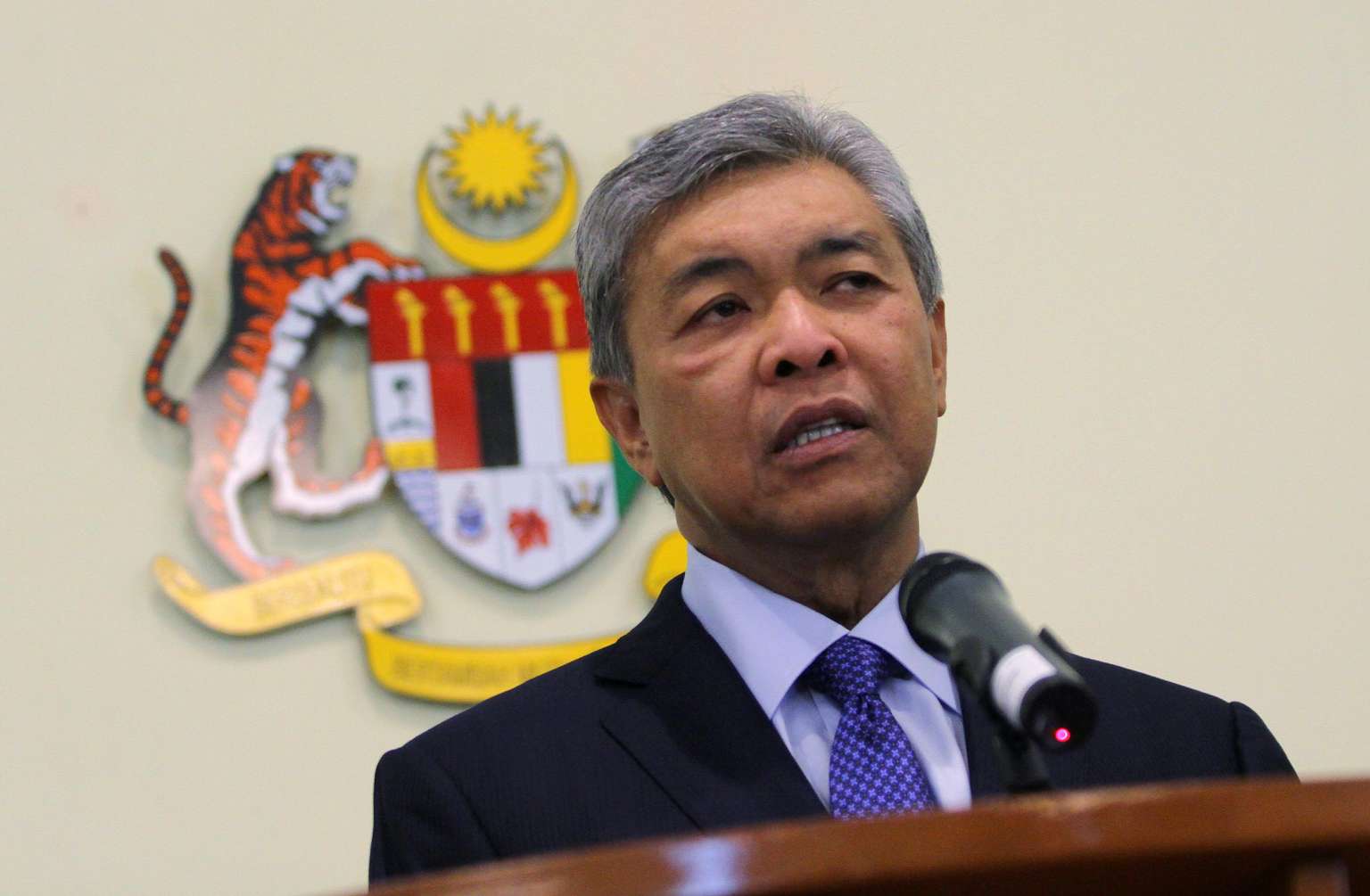 Malaysian Deputy Prime Minister Ahmad Zahid Hamidi says on August 15, 2015 that there is an Umno leader who is behind a plot with opposition MPs to topple the government. --